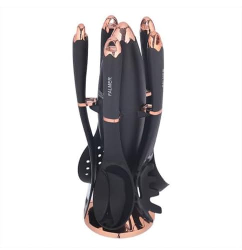 Generic - مجموعة أدوات مطبخ مع حامل، أسود وذهبي وردي، أدوات مطبخ من الفولاذ مقاوم للصدأ