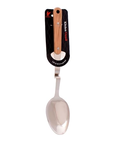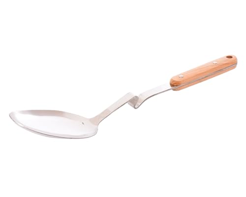 Generic - ملعقة تقديم من الستانلس ستيل بمقبض خشبي، مقاس L