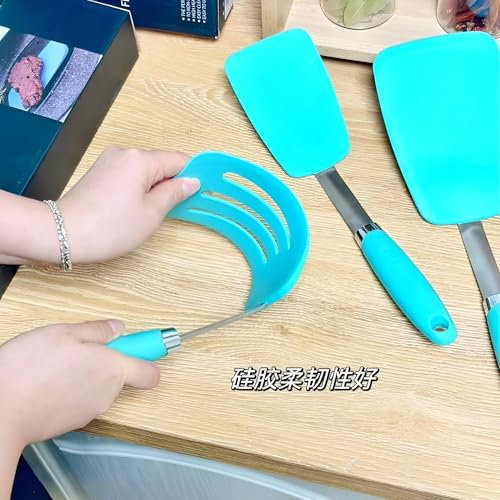 - تتميز المجموعة بملعقة مسطحة مريحة من السيليكون تضمن قبضة سلسة أثناء تقليب المكونات. تم تصميم هذه الأداة خصيصًا لنقل الطعام دون خدش أو إتلاف أسطح أواني الطهي الخاصة بك، مما يجعلها إضافة أساسية لأي مطبخ لمهام الطبخ الحساسة.