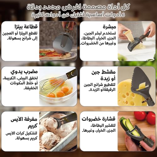 - طقم كامل من 7 قطع - يتضمن أدوات المطبخ الأساسية مثل المضرب والمبشرة وغيرها - مثالية للطهي والخبز وإعداد الوجبات اليومية.