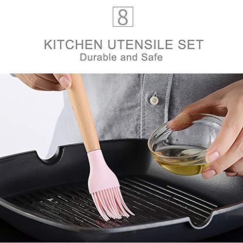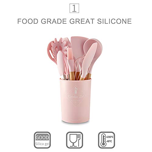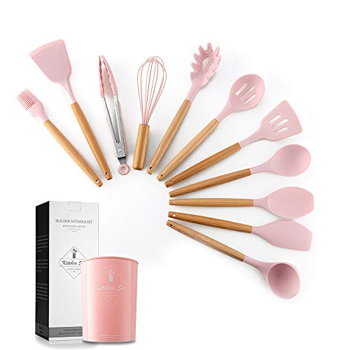 Galapare - أدوات المطبخ من 11 قطعة من السيليكون غير اللاصق من جل السيليكا بمقبض خشبي من جالابير