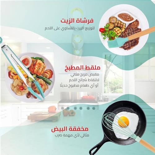 - مقاومة لدرجات الحرارة العالية: مصنوعة من السيليكون عالي الجودة، تم تصميم هذه الأدوات لتحمل درجات الحرارة العالية، مما يضمن المتانة والسلامة أثناء الطهي.