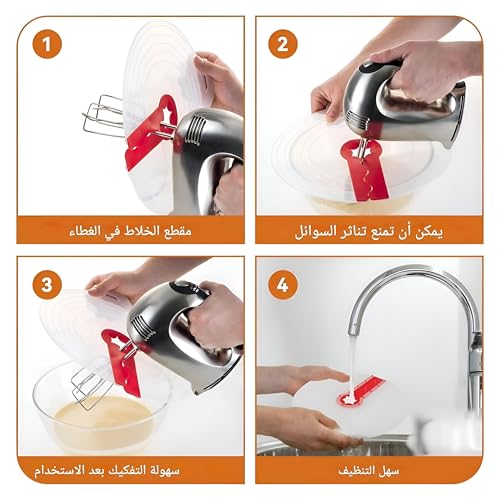 - يساعد واقي الرذاذ هذا على الحفاظ على سطح الطاولة نظيفًا عن طريق منع التناثر المفرط أثناء الخفق الكهربائي. يحتوي بشكل فعال على الفوضى عند خفق البيض أو تحضير الكريمة، ما يضمن بقاء مطبخك مرتبًا وخاليًا من الانسكابات غير المرغوب فيها.
