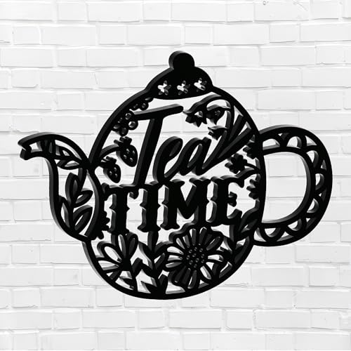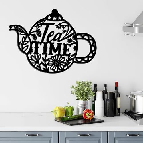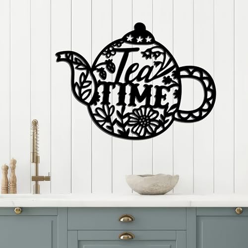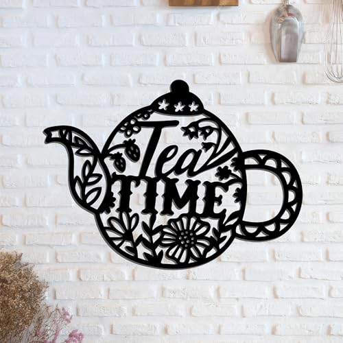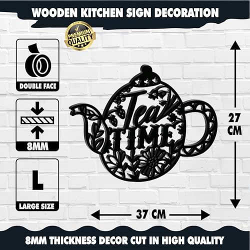 Generic - ديكور حائط للمطبخ, مقاس 37X27, شكل براد شاي فلوري, خشب MDF إسباني عالي الجودة، لون أسود، سماكة 8ملم، ديكور مجسم عصري، تصميم أنيق وجاهز للتثبيت, ياتي معه دبل فيس لاصق