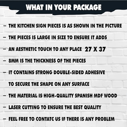 - ديكور حائطي للمطبخ مصنوع من خشب MDF إسباني عالي الجودة بسماكة 6 ملم، يتميز بالقوة وخفة الوزن، مع لون أسود أنيق يتناسب مع جميع أنماط ديكورات المطابخ الكلاسيكية والعصرية، ويعد من أفضل خامات الديكور المنزلي المستخدمة حاليًا