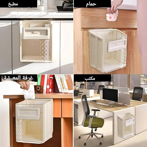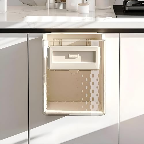Generic - سلة مهملات معلقة قابلة للطي بسعة كبيرة للمطبخ مع لمسة نهائية من الأكريليك الشفاف، لون أبيض كريمي، صندوق مهملات بقايا الطعام موفر للمساحة