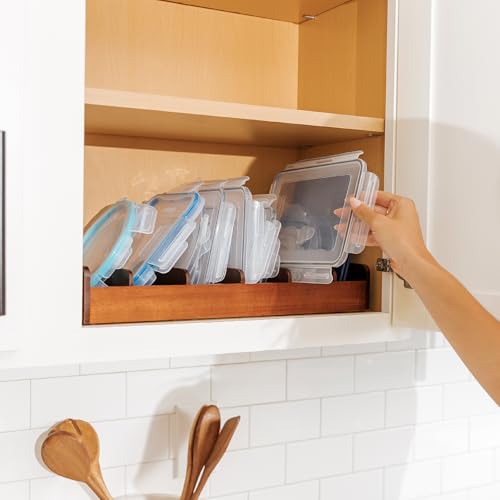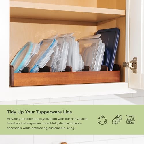 KitchenEdge - كتشين ايدج منظم مناشف المطبخ وتخزين الطعام من اكاسيا، مثالي لادراج المطبخ والخزائن وخزانة المؤن، 5 حشوات حائط قابلة للتعديل، اقدام غير قابلة للانزلاق، لتنظيم حاويات الطعام، لمسة نهائية امنة للطعام