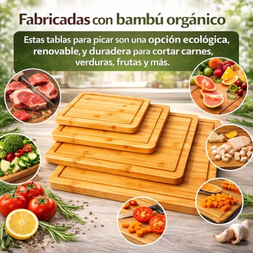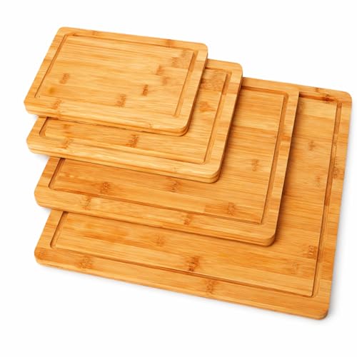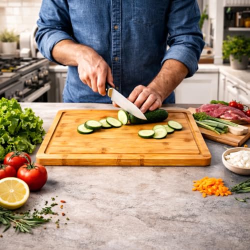 KITCHENES - ألواح تقطيع من الخيزران مع فتحة عصير من كيتشنز | مادة صديقة للبيئة | لوح تقطيع وتقديم الطعام - إكسسوارات المطبخ المنزلية - مجموعة المطبخ