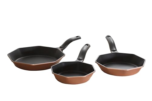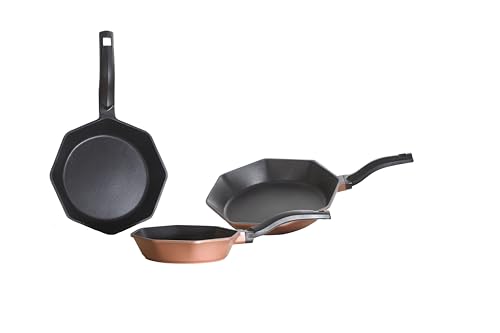 Kitchenia - طاسة قلي من الجرانيت المصبوب بشكل سداسي من كيتشنيا، 3 قطع (20-24-28) - صنع في تركيا - لون نحاسي