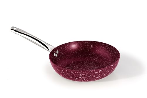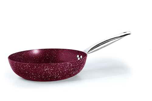 Kitchenia - طاسة قلي من الجرانيت بمقبض من الصلب من كيتشينيا، مقاس (28)، لون أحمر غامق، جرانيت الومنيوم