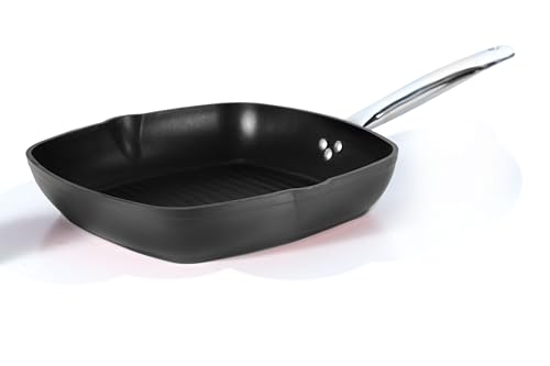 Kitchenia - طاسة شواء مربعة من الفولاذ من كيتشنيا - أواني طهي من الجرانيت - لون أسود، مقاس (28)، جرانيت الومنيوم
