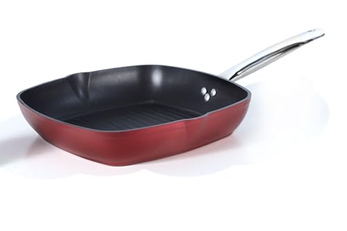 Kitchenia - طاسة شواء جرانيت مربعة مصنوعة من الصلب كتشينيا مقاس 28 لون أحمر غامق
