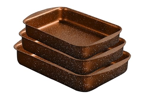 Kitchenia - طقم أواني للطهي من الجرانيت تاجين 3 من كيتشينيا (1-3-5) - طقم مكون من 3 قطع - لون نحاسي، جرانيت الومنيوم