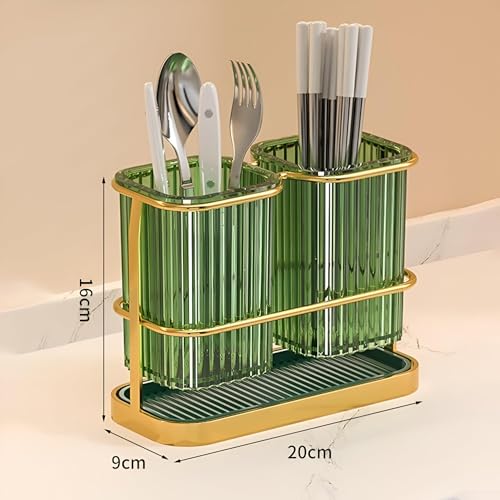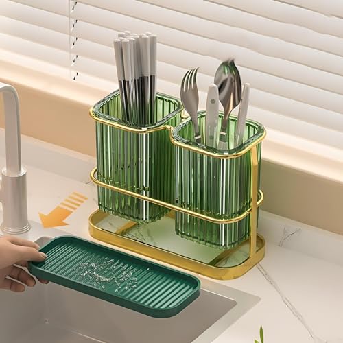 • تم تصميم رف التخزين هذا لتعدد الاستخدامات، مما يوفر سعة كبيرة مع تصميم أنبوب مزدوج يسمح بتخزين الأدوات الجافة والرطبة في وقت واحد مثل عيدان تناول الطعام والملاعق، مما يجعل التنظيم فعالاً وتصريف المياه فعالاً.