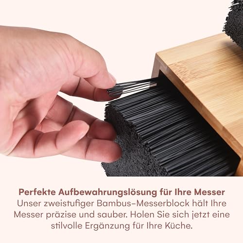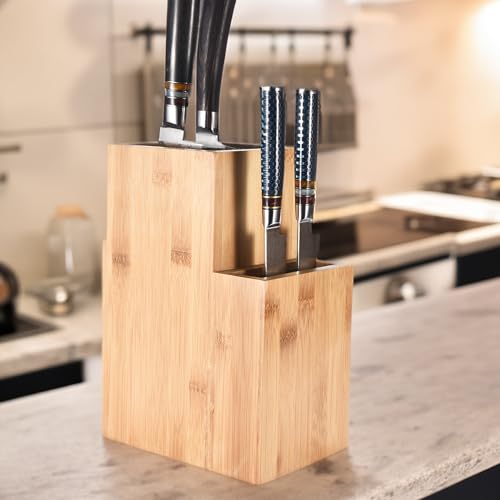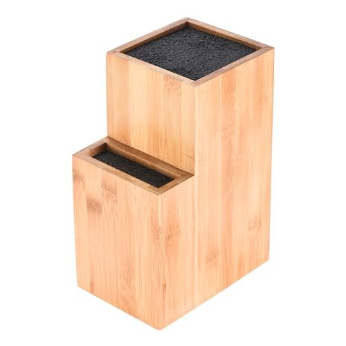 KITCHTIC - حامل سكاكين فارغ من الخيزران بطبقتين بلون بني طبيعي من كيتشتيك - حامل سكاكين عالمي بدون سكاكين - حامل سكاكين خشبي ومنظم لسكاكين المطبخ - تصميم خشبي بدون فتحات مع شعيرات