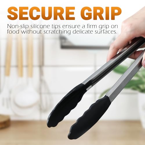 - ✔【أطراف سيليكون مقاومة للحرارة ومقاومة للالتصاق】: مساكات الشواء هذه مجهزة بأطراف سيليكون مقاومة للحرارة. مساكات طعام مع أطراف من السيليكون مثالية للاستخدام في بيئات الطهي ذات درجات الحرارة العالية. سواء كنت تشوي شرائح اللحم أو تطهو الخضار بالبخار أو تقلي البيض، فإن هذه الأطراف غير اللاصقة توفر قبضة موثوقة دون خدش أواني الطهي. بالإضافة إلى ذلك، فهي سهلة التنظيف وآمنة للغسل في غسالة الأطباق، مما يوفر لك الوقت والجهد عندما يتعلق الأمر بتنظيف المطبخ.