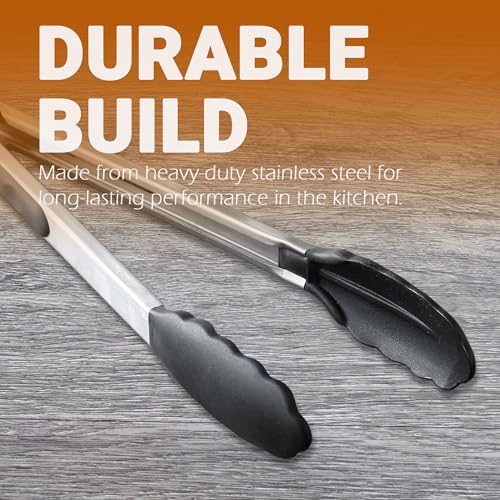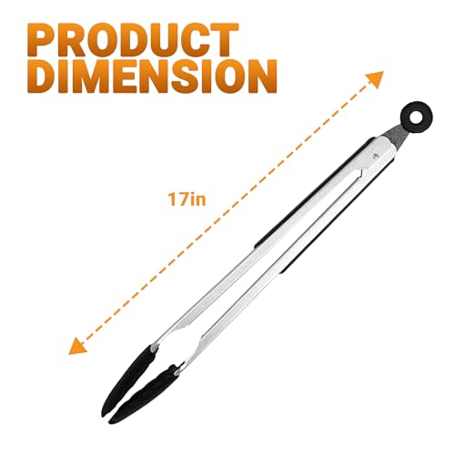 Kitcoomi - مساكة طعام طويلة للشواء والمطبخ متينة من الفولاذ المقاوم للصدأ مع أطراف سيليكون مقاومة للحرارة وغير لاصقة - مثالية للشواء والتقديم من كيتكومي، 40.6 سم