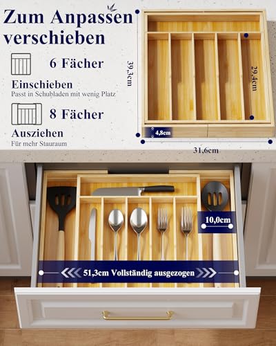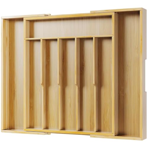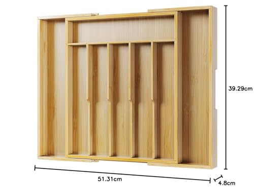 Kitsure - منظم درج أدوات تناول الطعام مصنوع من الخشب الطبيعي، لوح تقسيم قابل للتعديل، طقم تنظيم موفر للمساحة من كيت شور