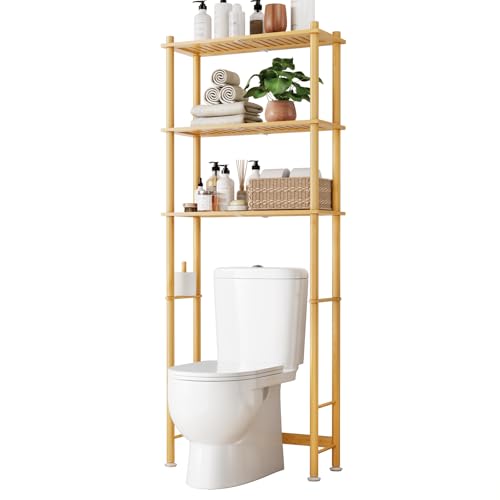 Kitsure - كيت شور رف فوق المرحاض - منظمات حمام من 3 طبقات من الخيزران والتخزين مع حامل ورق، منظم حمام فوق المرحاض مع مرساة حائط للشرفة والغسيل، طبيعي، 3 طبقات (ارتفاع 61 انش)