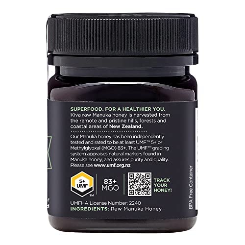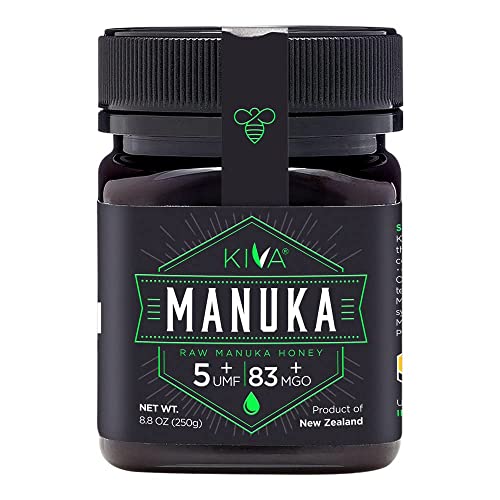 Kiva - عسل مانوكا خام من كيفا، عامل مانوكا الفريد المعتمد 5+ | ميثيل جلوكسال 83+ | عسل نقي 100% من نيوزيلندا (8.8 اونصة/250 جرام) | غير معدل وراثيًا | لا يحتوي على مضادات حيوية | يمكن تتبع عملية انتاجه