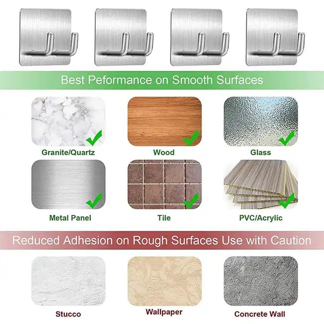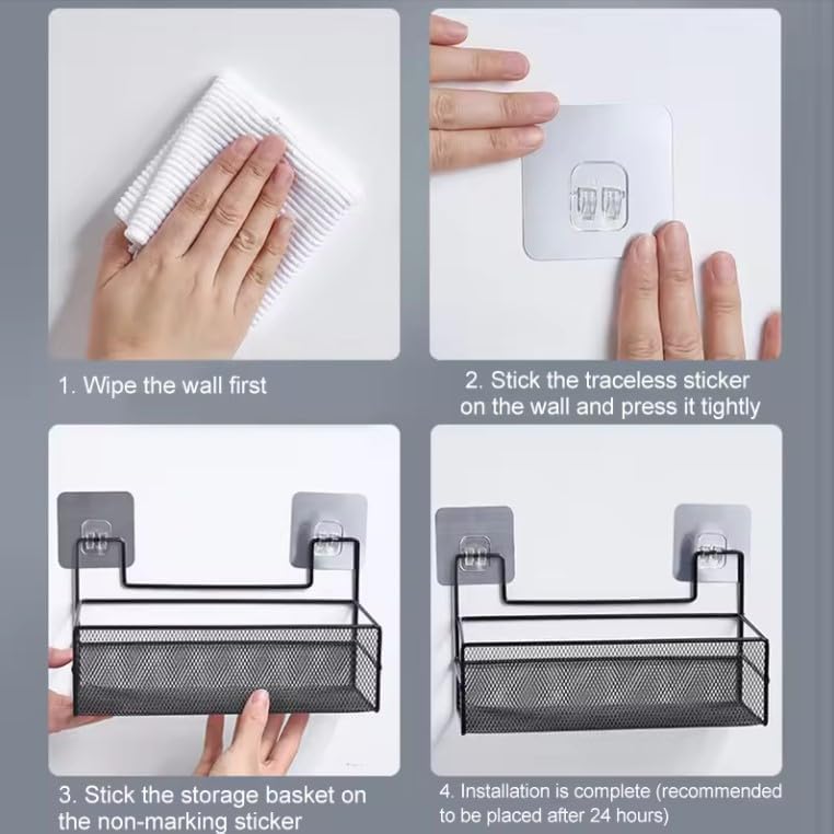 - مواد لاصقة قوية بدون ثقب: اجتازت المواد اللاصقة عالية الجودة الاختبارات المتعلقة بالحمل. لا حاجة للثقب. تصميم سهل التركيب وفائق الثبات. ملاحظة: تأكد من اتباع التعليمات عن كثب عند وضع المواد اللاصقة.