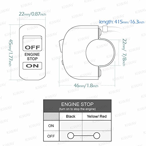 KiWAV - مفتاح تشغيل وإيقاف محرك من كيواف أسود 12 فولت تيار مستمر كهربائي للموتوسيكلات والسكوتر ايه تي في يناسب مقود 2.2 سم