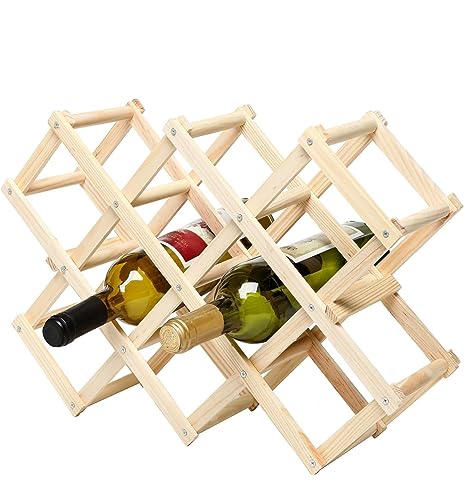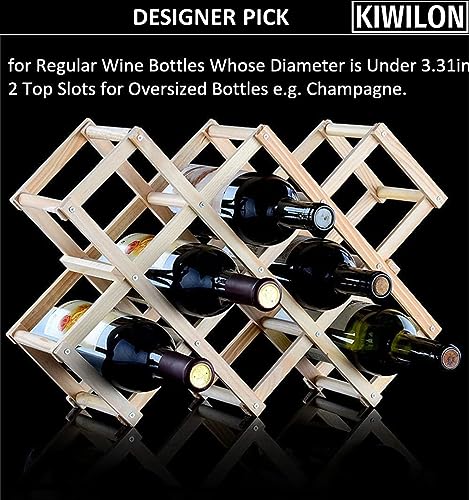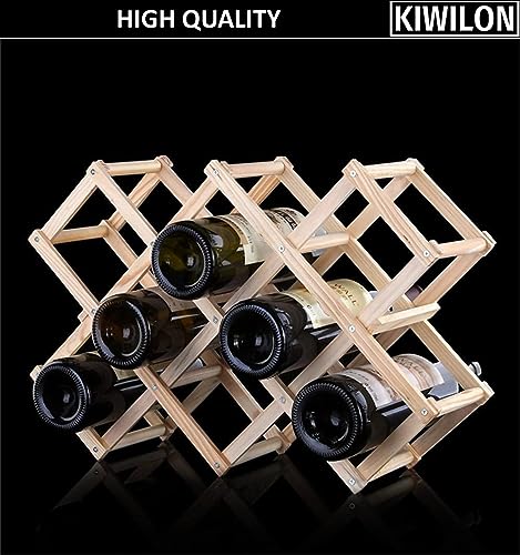 Kiwilon - حامل زجاجات نبيذ خشبي قائم بذاته قابل للطي من كيويلون، رف تخزين زجاجات النبيذ للمطبخ والحانات والمخزن واقبية النبيذ ودواليب تخزين النبيذ (10 زجاجات)