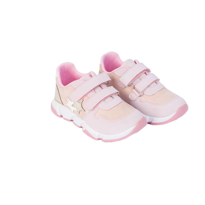 KIX - أحذية رياضية مكتنزة 378 للبنات من كيكس، مزود بأشرطة لاصقة مزدوجة بلاصق فيلكرو حذاء جري كاجوال مريح بتفاصيل نجوم للوالدين - 28-378
