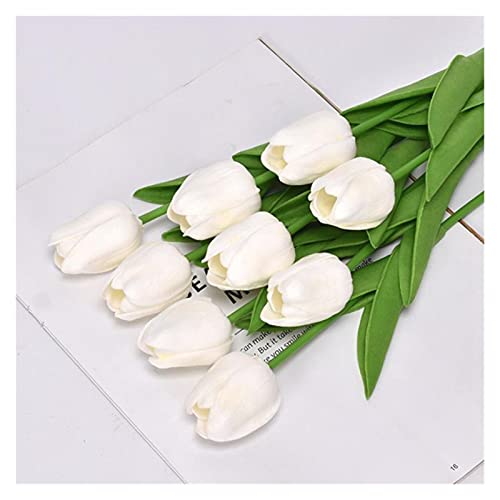 KJHJ - باقة زهور توليب صناعية من البولي يوريثان بملمس حقيقي لتزيين حفلات الزفاف وحفلات الربيع ومستلزمات الحديقة المنزلية 803 من كيه جيه اتش جيه (اللون: ابيض، المقاس: فرع واحد)
