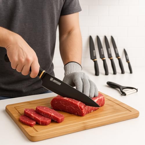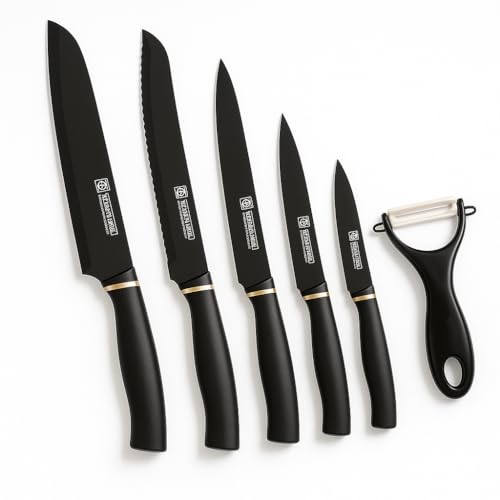 Generic - طقم سكاكين مطبخ 6 قطع مع مقشرة سيراميك موديل KK-90 – استانلس ستيل، نصل حاد، مقبض مريح، للاستخدام المنزلي والاحترافي
