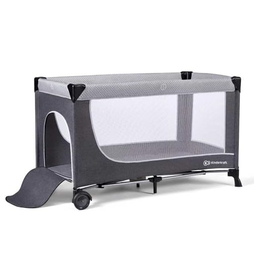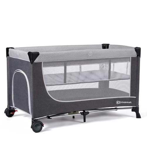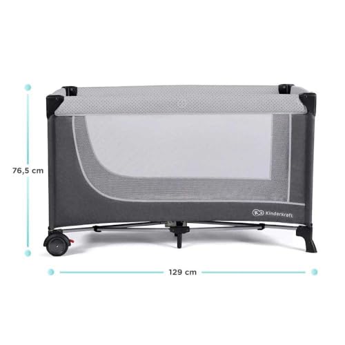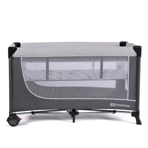 kk Kinderkraft - سرير سفر ليودي للأطفال بارتفاع طابقين مزود بعجلات متحركة قابل للطي بسيط وسريع للأحجام الصغيرة مع شنطة من كيه كيندركرافت لون رمادي مقاس 1.20 متر×60 سم
