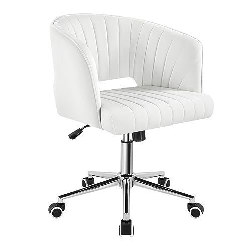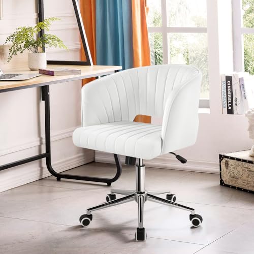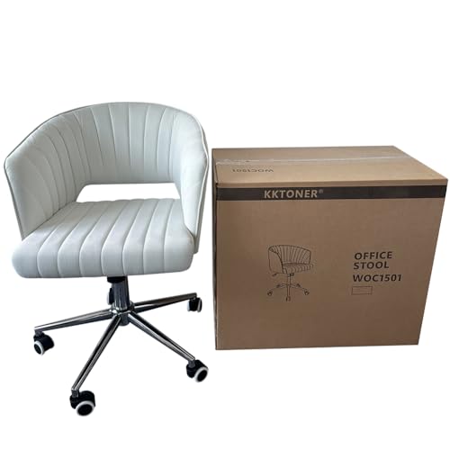KKTONER - كرسي من كي كي تونر للمكتب المنزلي وغرف النوم والمعيشة والدراسة، يدور 360 درجة مع تعديل الارتفاع ومسند ظهر شبه مغلق، مصنوع من المعدن بلون كريمي
