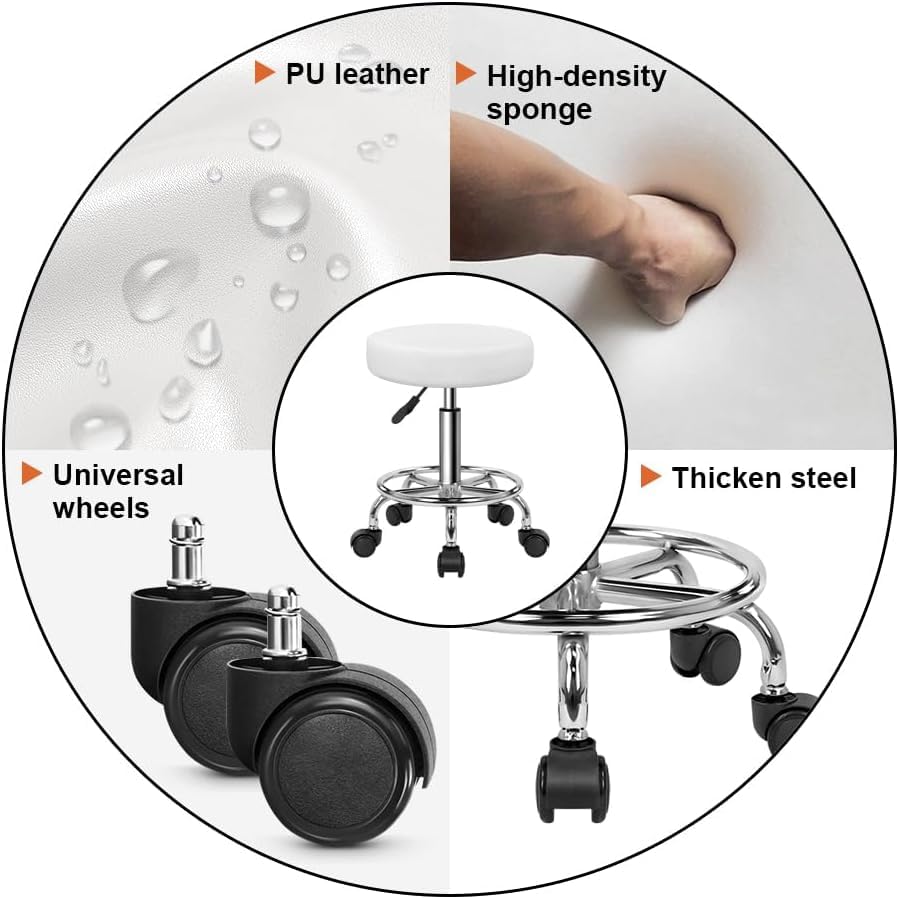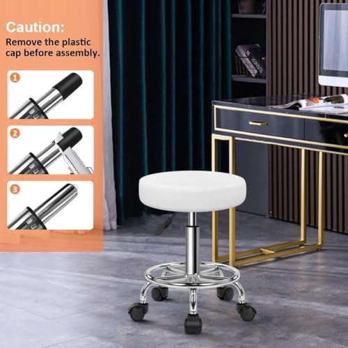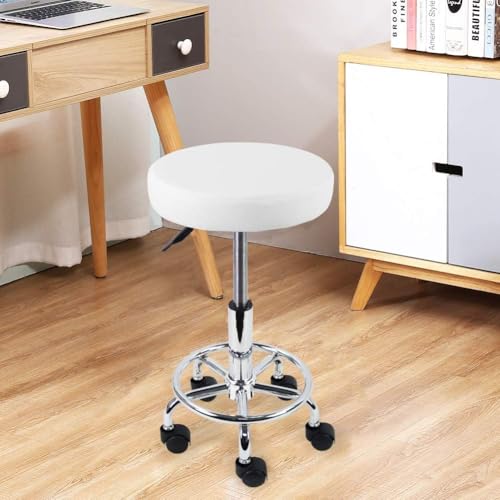 Modern Future - كرسي دوار دائري من الجلد الصناعي مع مسند قدم قابل لتعديل الارتفاع والمنتجعات الصحية والصالونات والتاتو والعمل والمكتب والتدليك من كيه كيه تونر، لون ابيض، مقاس S (ابيض)