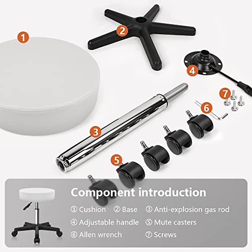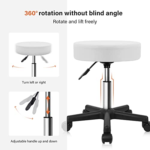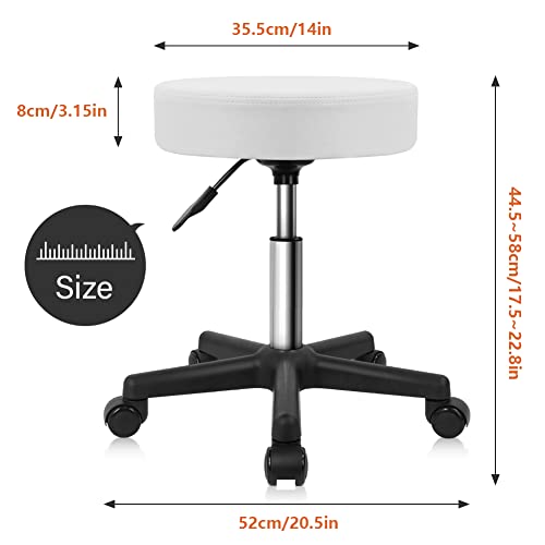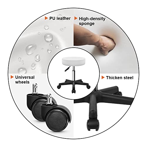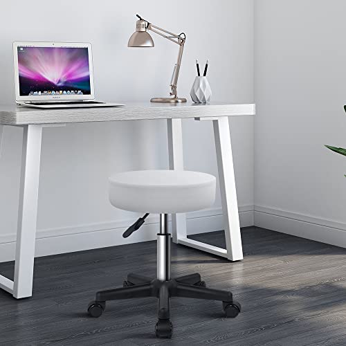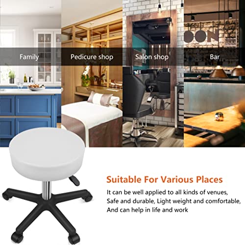KKTONER - كرسي دوار دائري من كيه كيه تونر مصنوع من الجلد الصناعي بارتفاع قابل للتعديل وعجلات، مناسب للعمل في المنتجعات الصحية وصالونات التجميل (أبيض)