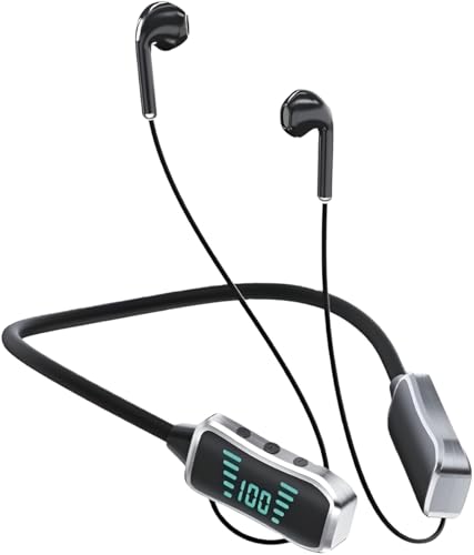 Generic - سماعة حول الرقبة بلوتوث لاسلكية – شاشة LED لعرض الطاقة – بطارية تدوم حتى 48 ساعة – صوت HiFi عالي الدقة وتقنية عزل الضوضاء – تصميم مريح مقاوم للعرق والماء – موديل KL50 (اسود)