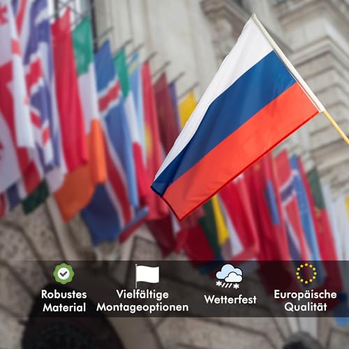 Klartextilien - علم روسيا من كلارتيكستيلين، علم مقاوم لعوامل الطقس ومصنوع من البوليستر القوي والمتين، مع طباعة متينة بألوان زاهية، مناسب للاستخدام الداخلي والخارجي، مقاس 90 سم × 1.5 متر