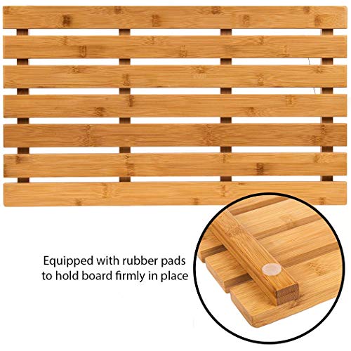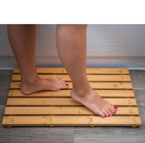 Klass Home Collection - دواسة استحمام خشبية مستطيلة من كلاس هوم | حمام خشب البامبو | دواسات للحمام والدش الخارجي والاسبا | متعددة الوظائف مزودة بأقدام مطاطية مقاومة للانزلاق مقاس 60 × 35