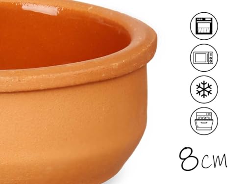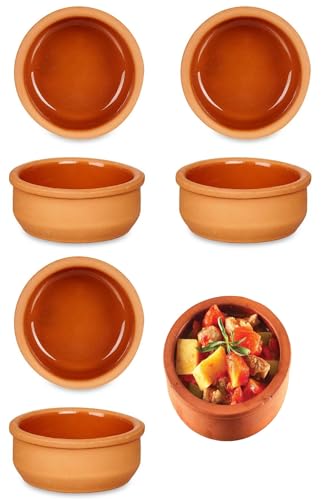 Klauss - 6 بولات صلصة راميكينز صغيرة من كلاوس، طقم من 6 أطباق عميقة لتقديم الطعام من الفرن إلى الطاولة مصنوعة من طين التيراكوتا، للتاباس والكريم بروليه والخبز الطيني، للمطبخ والمنزل والمطعم، قطر 8 سم