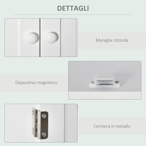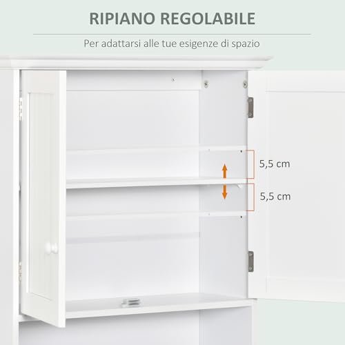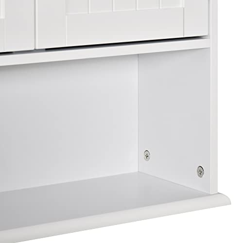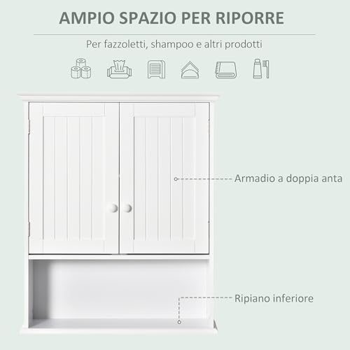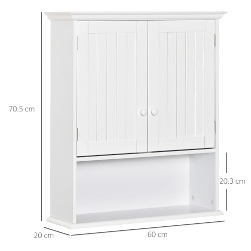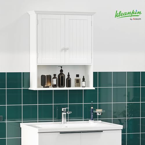 kleankin - خزانة حمام ببابين مع اغلاق مغناطيسي ورف مفتوح، وحدة حائط حمام معلقة مع رف قابل للتعديل، للمطبخ والمدخل وغرفة المعيشة، 60 × 20 × 70.5 سم، ابيض من كلينكين