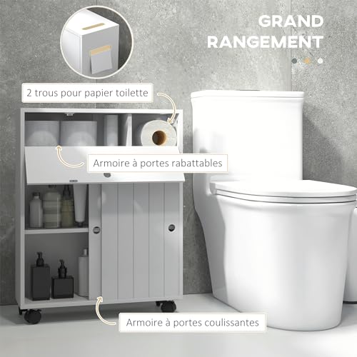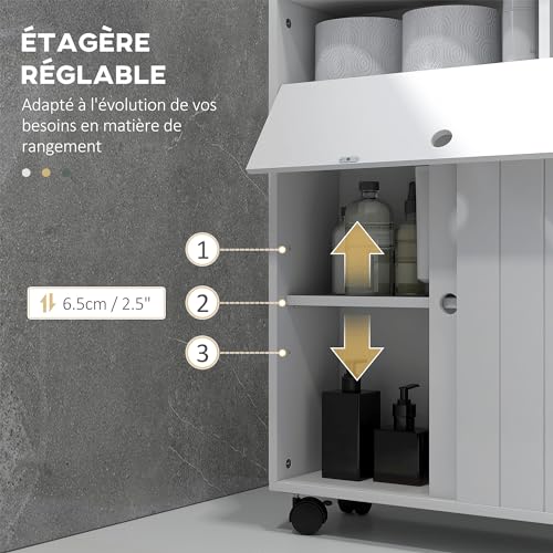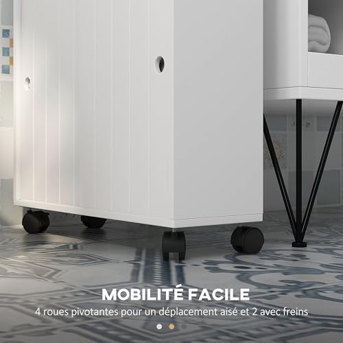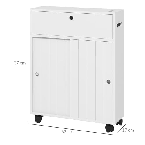 kleankin - وحدة تخزين الحمام، وحدة ورق تواليت بأبواب منزلقة، مقصورات متعددة بقاعدة عجلات، وحدة تواليت من كلينكين، 52 × 17 × 67 سم، أبيض