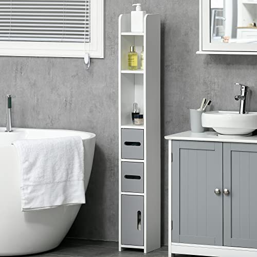 kleankin - دولاب حمام طويل مزود بـ3 أبواب و3 رفوف مفتوحة وحدة تخزين للحمام وغرفة المعيشة النوم بتصميم عصري من كلينكين 15 سم × 17 1.2 متر رمادي خشب مُصنع