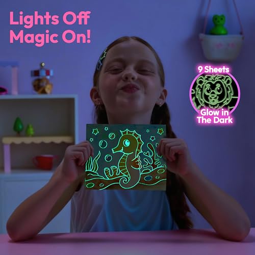 - سحر يتوهج في الظلام: مجموعات الرسم بالألوان المائية مع 9 تصميمات حيوانات تتميز بخطوط متوهجة، شاهد أعمالك الفنية تتألق في الظلام، تضيء مساحتك بإبداعاتك، أطلق العنان لخيال الأطفال وإبداعهم