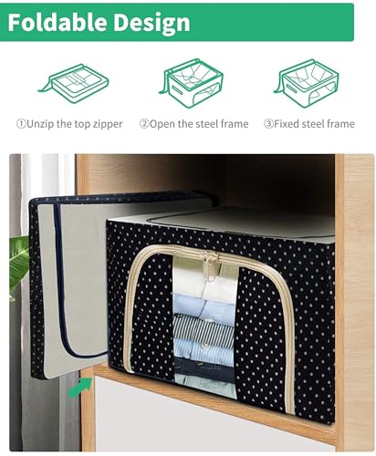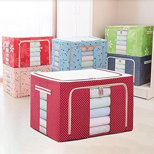 KLIFFOO - صناديق تخزين قابلة للطي لتنظيم الملابس بتصميم مستطيل قابل للتكديس مع إطار معدني وفتحة شفافة ومقابض للحمل من كليفو، (66 لتر)، متعدد الألوان