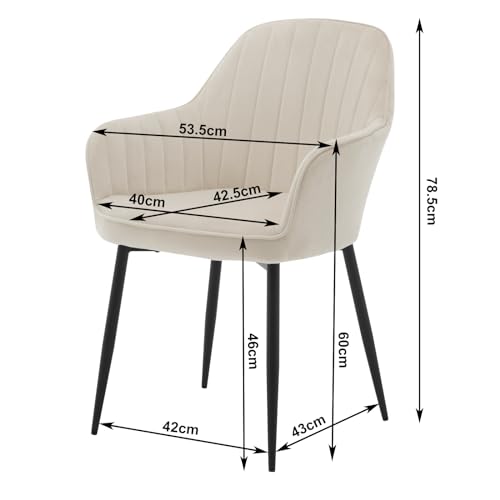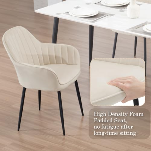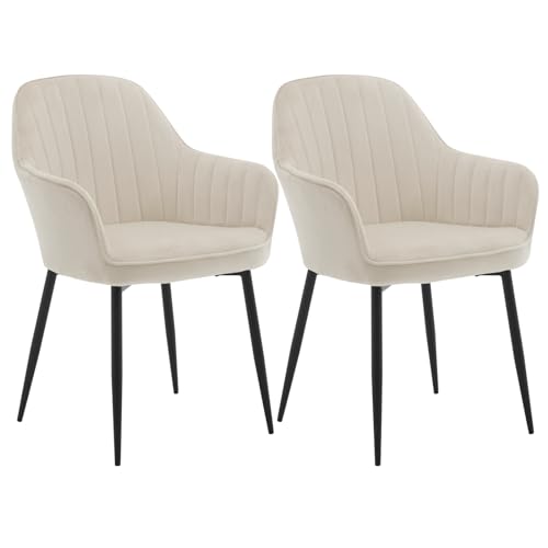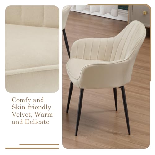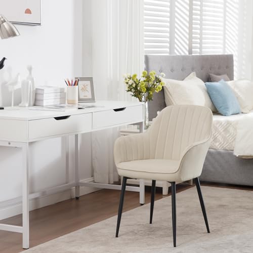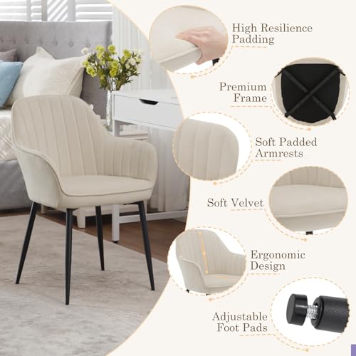 Klihome - كراسي لطاولة الطعام كراسي مطبخ بتوسيد عريض مع مسند ظهر قطيفة لغرفة الطعام وغرفة النوم وغرفة المعيشة منجد أرجل معدنية كراسي طاولة التزيين كراسي لغرفة النوم من كليهوم طقم من قطعتين لون كريمي