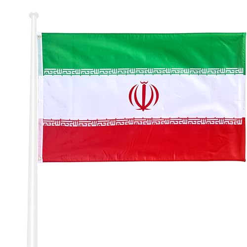 - علم إيران هذا مصنوع من البوليستر عالي الجودة بأبعاد 150 سم × 90 سم وفتحتين معدنيتين لسهولة التركيب. مثالي للاستخدام الداخلي والخارجي بفضل مقاومته للماء والتآكل في الطقس.