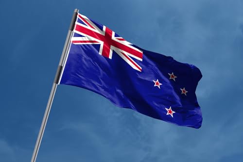 - علم نيوزيلندا هذا مصنوع من البوليستر عالي الجودة بأبعاد 150 سم × 90 سم وفتحتين معدنيتين لسهولة التركيب. مثالي للاستخدام الداخلي والخارجي بفضل مقاومته للماء والتآكل في الطقس.