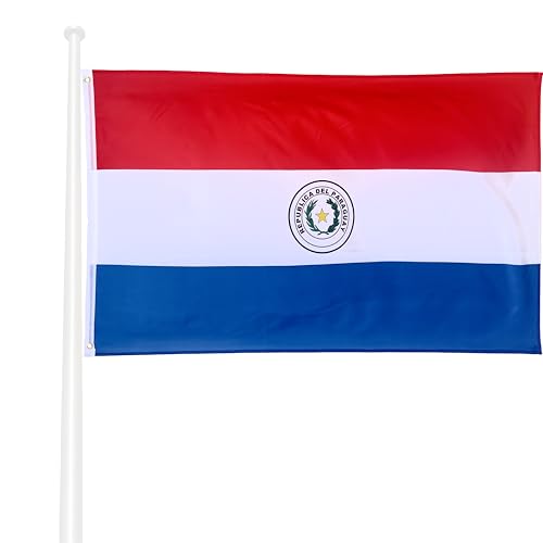 KliKil - علم باراغواي كبير الحجم 150 × 90 سم مع فتحتين معدنيتين لسهولة التركيب، طباعة متينة مقاومة للاشعة فوق البنفسجية والرياح الخفيفة - علم مزخرف رسمي لباراغواي