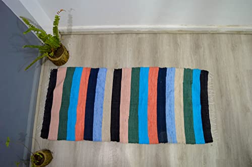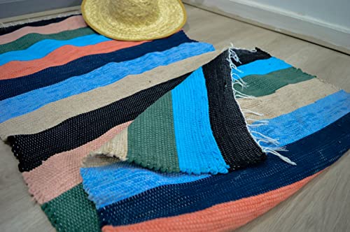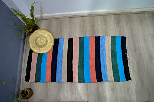 - سجادة أرضية ملونة مصنوعة يدويًا من القطن الطبيعي بنسبة 100% بعرض 70 سم وطول 1.50 متر بلون أسود / أصفر من كليم ميكس
