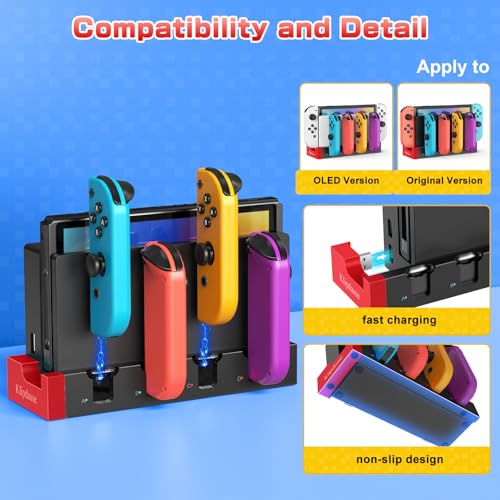 Klipdasse - شاحن من كليبداس بتقنية USB، متوافق مع نينتندو سويتش وسويتش OLED، بأربعة منافذ لجوي كون مع مؤشر LED