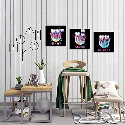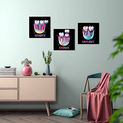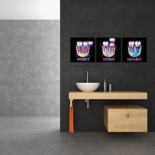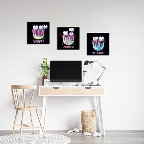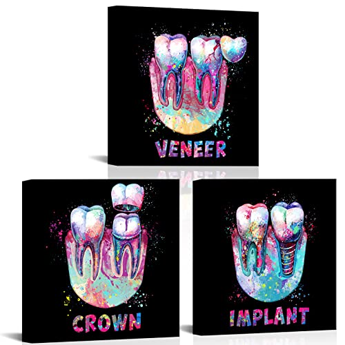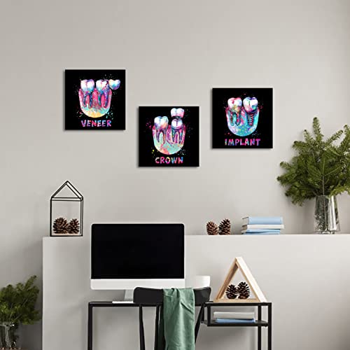 KLVOS - لوحة فنية طبية مطبوعة على قماش للحائط بتصميم تجريدي للاسنان وعلاج الاسنان والمكتب الطبي هدية رائعة لعيادة ومستشفى تقويم جاهزة للتعليق 12×12×3 قطع أسود